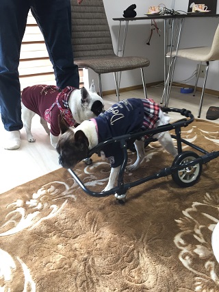 ※コロちゃんは、お外のお散歩用に4輪車椅子もご依頼頂きました。