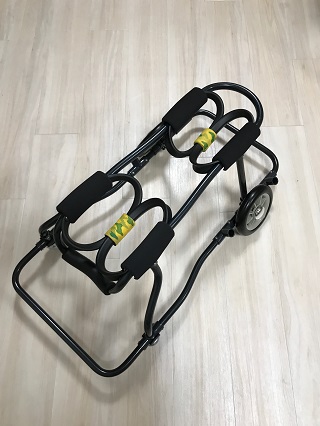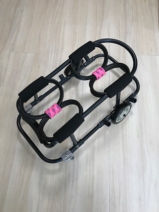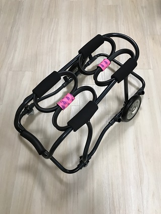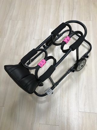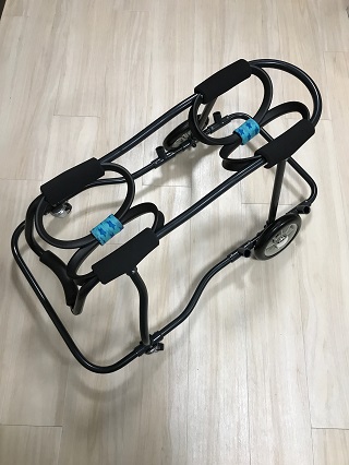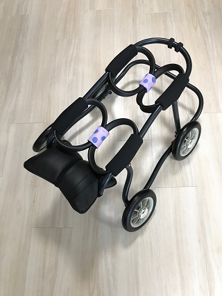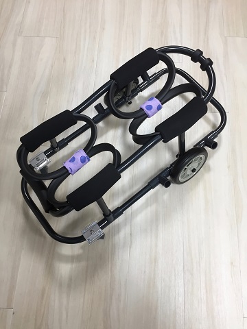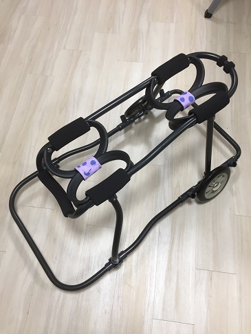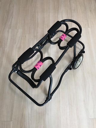 ニナちゃんには、2輪の車椅子もお作りしています!