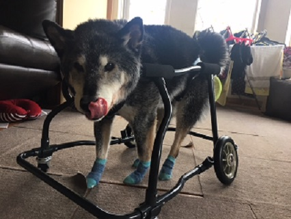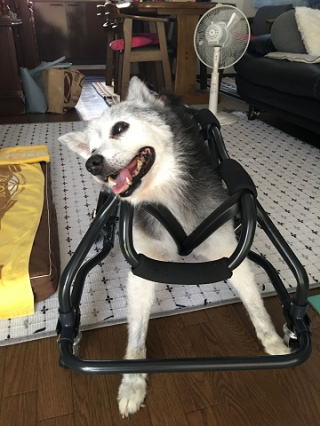 わざわざ横浜までお越し頂きました。ウニちゃんの車椅子をお渡しできて良かったです。
