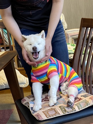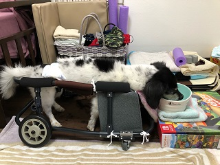 タロちゃん、目も耳も不自由とのとこで、最初車椅子に乗ったときは