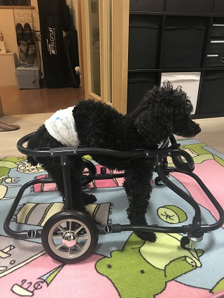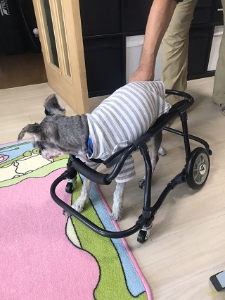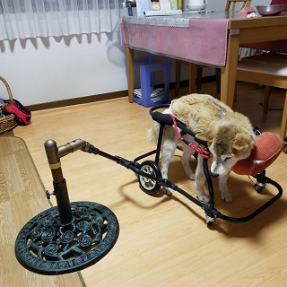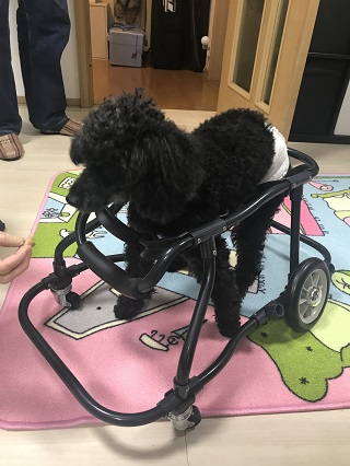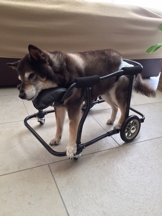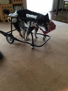 かりんちゃん、この1か月後にお外用にと、4輪車椅子を