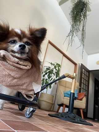 まめちゃん、後ろ足が弱くなってきてしまったとのことで