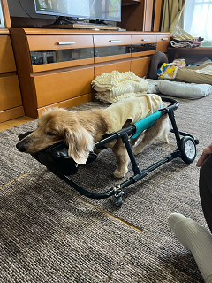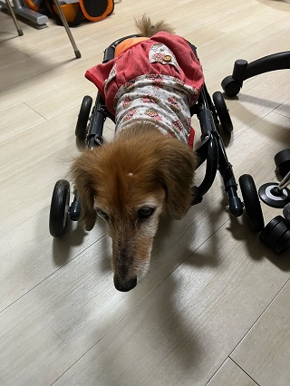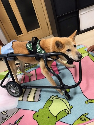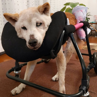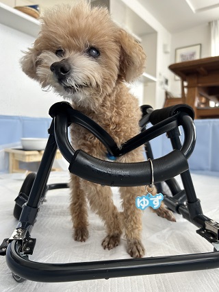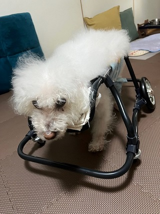 マロンちゃん、2022年4月に2輪車椅子をお作りしました。