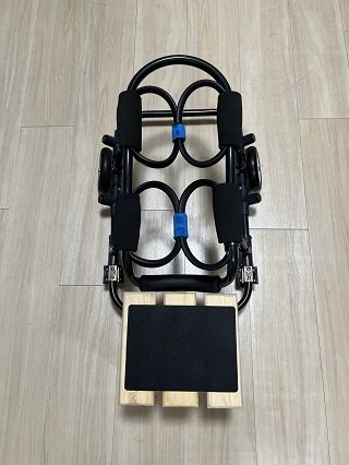 2輪車椅子から半4輪車椅子へ改良いたしました。